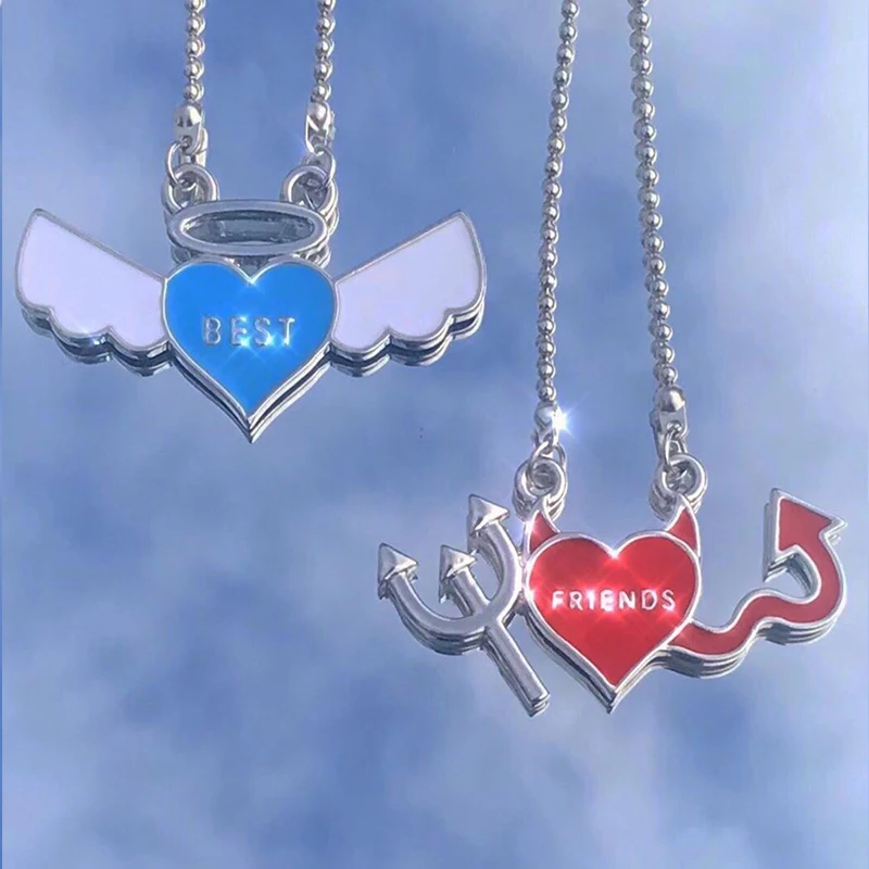 Ювелирные изделия Y2K, ожерелье в форме сердца, ангела, крыла демон...