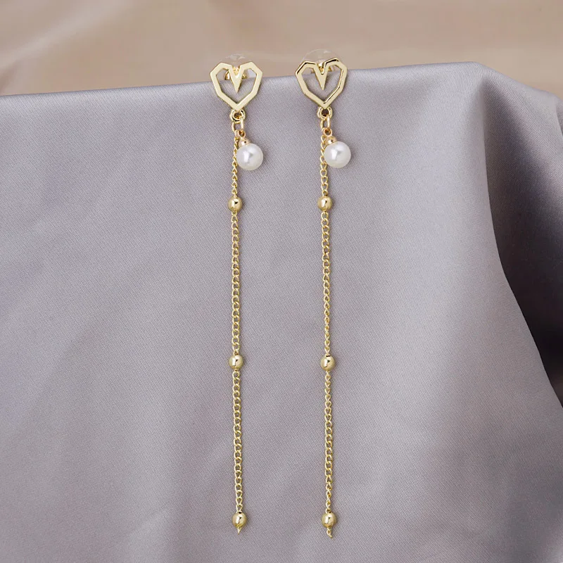 Происхождение Летняя мода кисточкой, серьги для женщин и девушек, золото Цвет с выемками сплав свисающие серьги с искусственным жемчугом Свадебные украшения