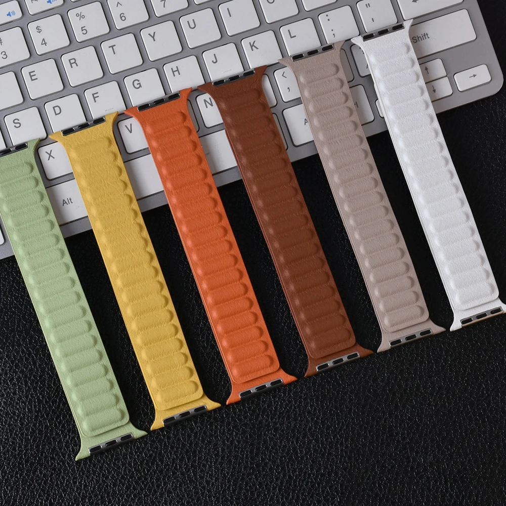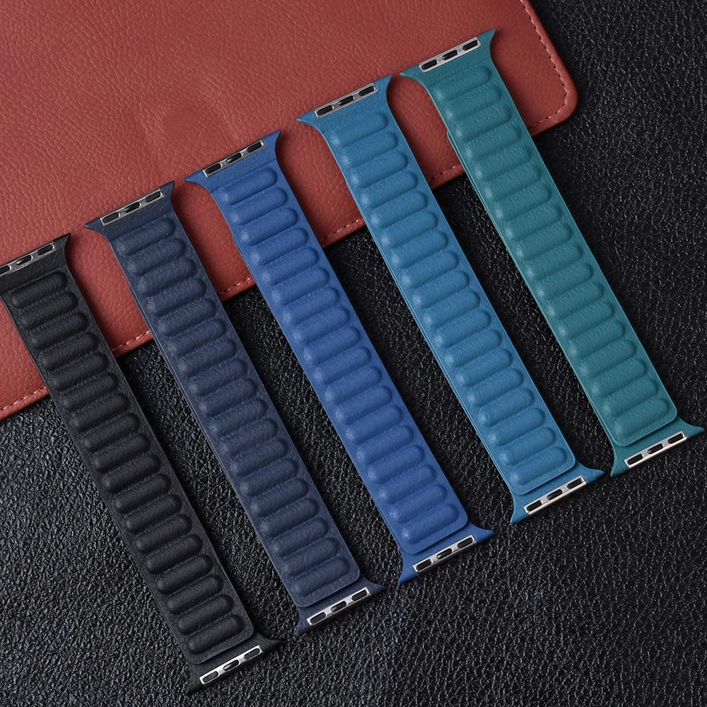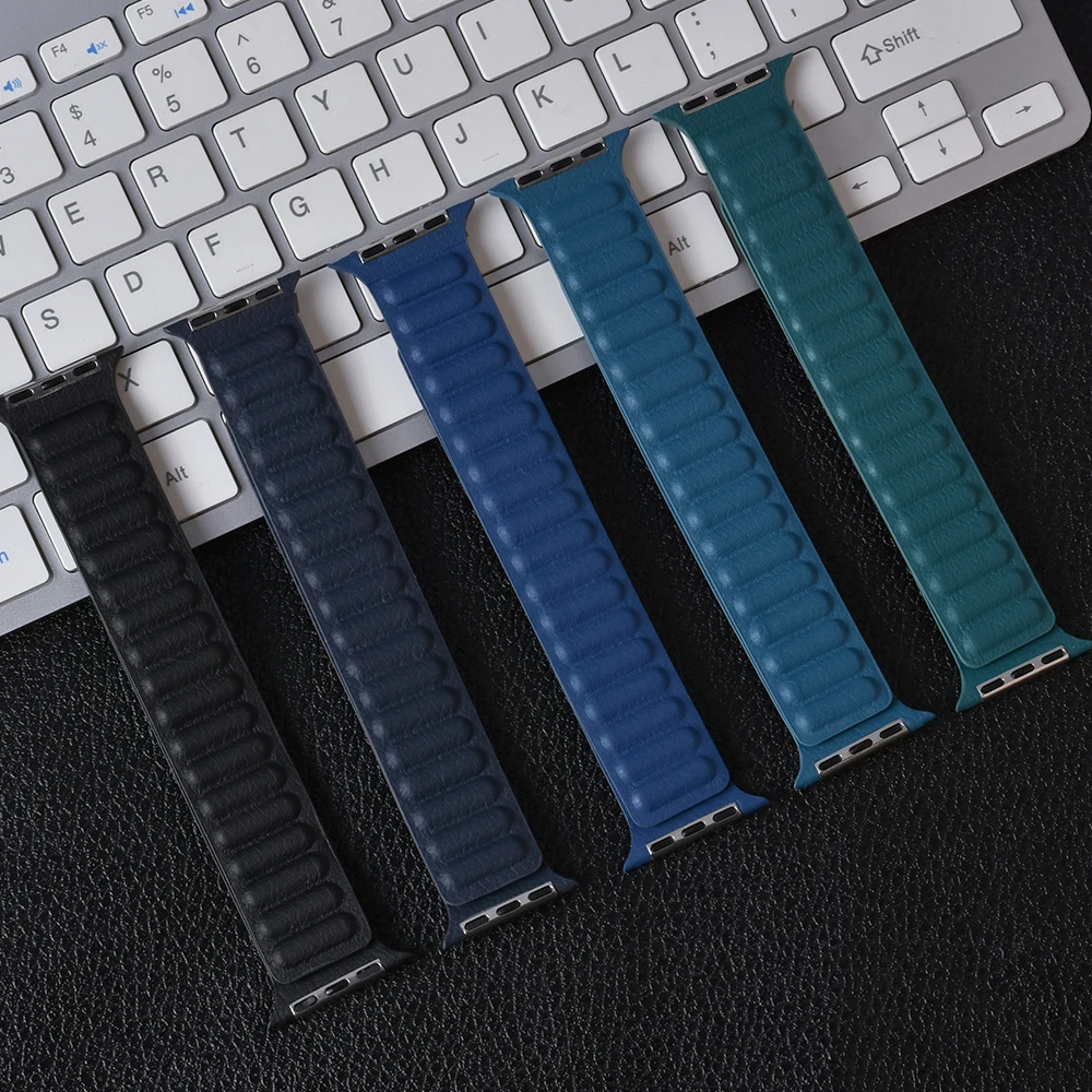 Магнитный ремешок для apple watch, кожаное звено, 44 мм, 40 мм, 41 ...