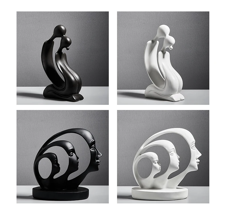 Скульптура с абстрактным лицом, статуя из смолы, пара моделей, Совр...