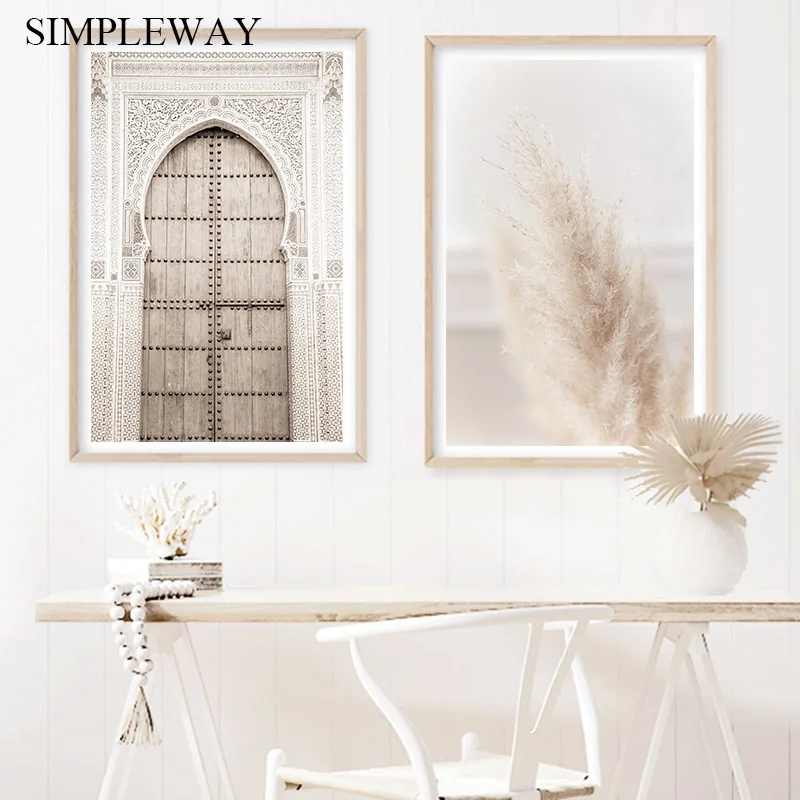 Богемная Трава Пейзаж холст Художественная печать мечеть дверь ВИНТАЖНЫЙ ПЛАКАТ Скандинавская стена бежевая картина Современное украшение для дома