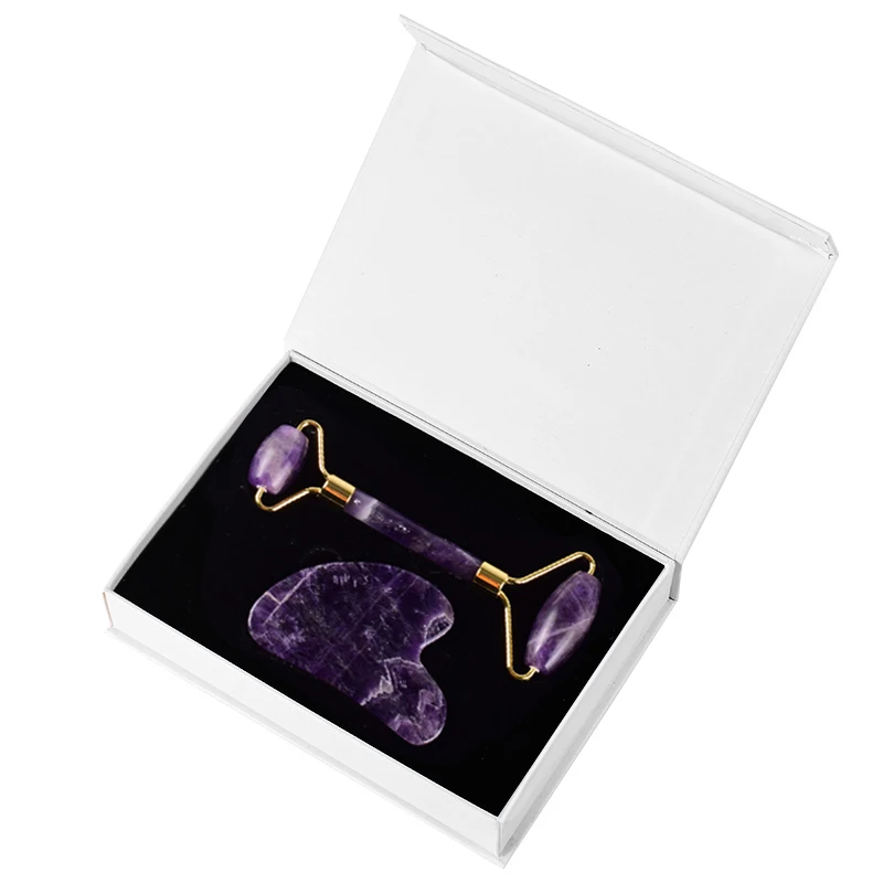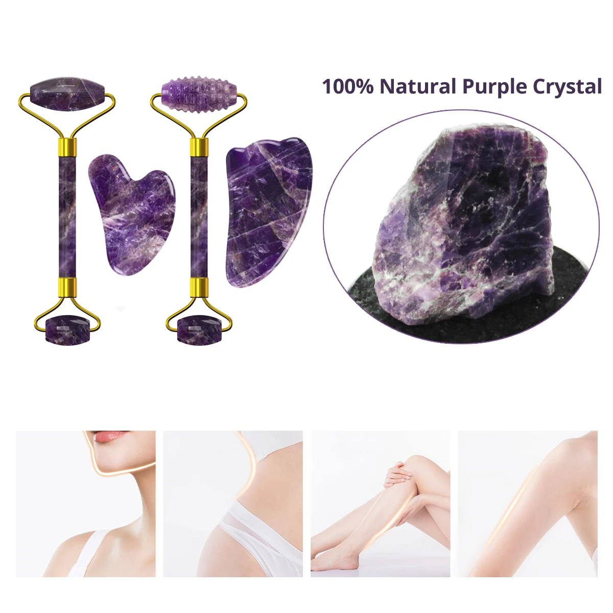 Аметист роликовый массажер для лица гуашь скребок для лица лифтинг глаз расслабляющий против морщин натуральный кристалл Gua Sha роликовый массажер