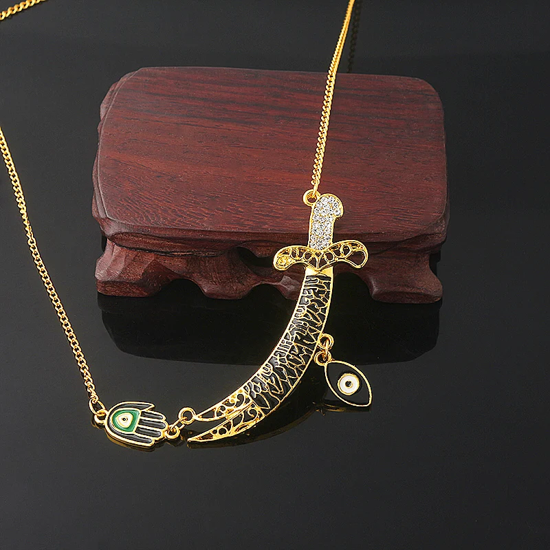 Мусульманское ожерелье HZ Zulfiqar, Имам Али с мечом, модель оружия из нержавеющей стали, кулон, ожерелье для женщин, мужчин, религиозное украшение, подарок
