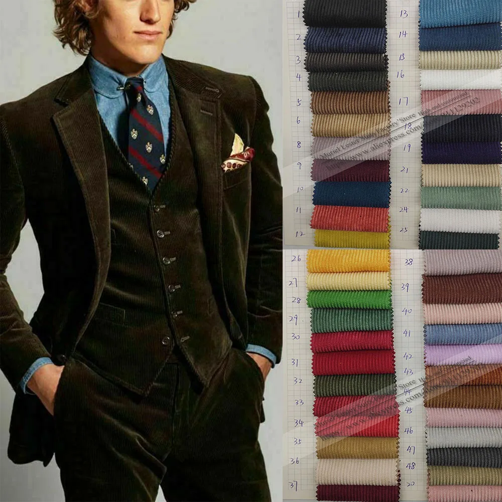 Новейший дизайн пальто и брюки, Коричневые Вельветовые мужские костюмы, официальная рабочая одежда, смокинги, 3 предмета, курение, деловой, Свадебный блейзер для жениха 2021