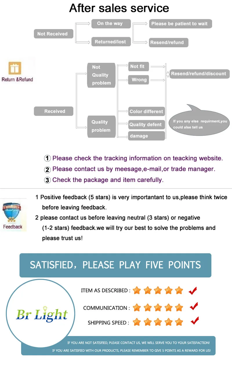 1. Доставка по всему миру.(За исключением некоторых стран и армейской почтовой службы/почтовых отделений флота)2. Заказы обрабатываются своевременно после подтверждения оплаты.3. Мы отправляем только по подтвержденным адресам заказа. Ваш адрес заказа должен совпадать с вашим адресом доставки.4. Представленные изображения не являются фактическим товаром и предназначены только для справки.5. Время доставки определяется перевозчиком и не включает выходные и праздничные дни. Сроки доставки могут меняться, особенно во время курортного сезона.6. Если вы не получили посылку в течение 30 дней с момента оплаты, пожалуйста, свяжитесь с нами. Мы отследим отправку и свяжемся с вами как можно скорее. Наша цель – удовлетворение клиентов!7. Из-за наличия на складе и разницы во времени, мы выберем доставку Вашего товара с нашего первого доступного склада для быстрой доставки.