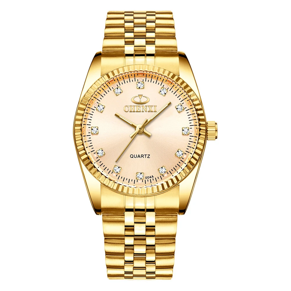 Мужские золотые часы CHENXI, из нержавеющей стали, кварцевые золоты...