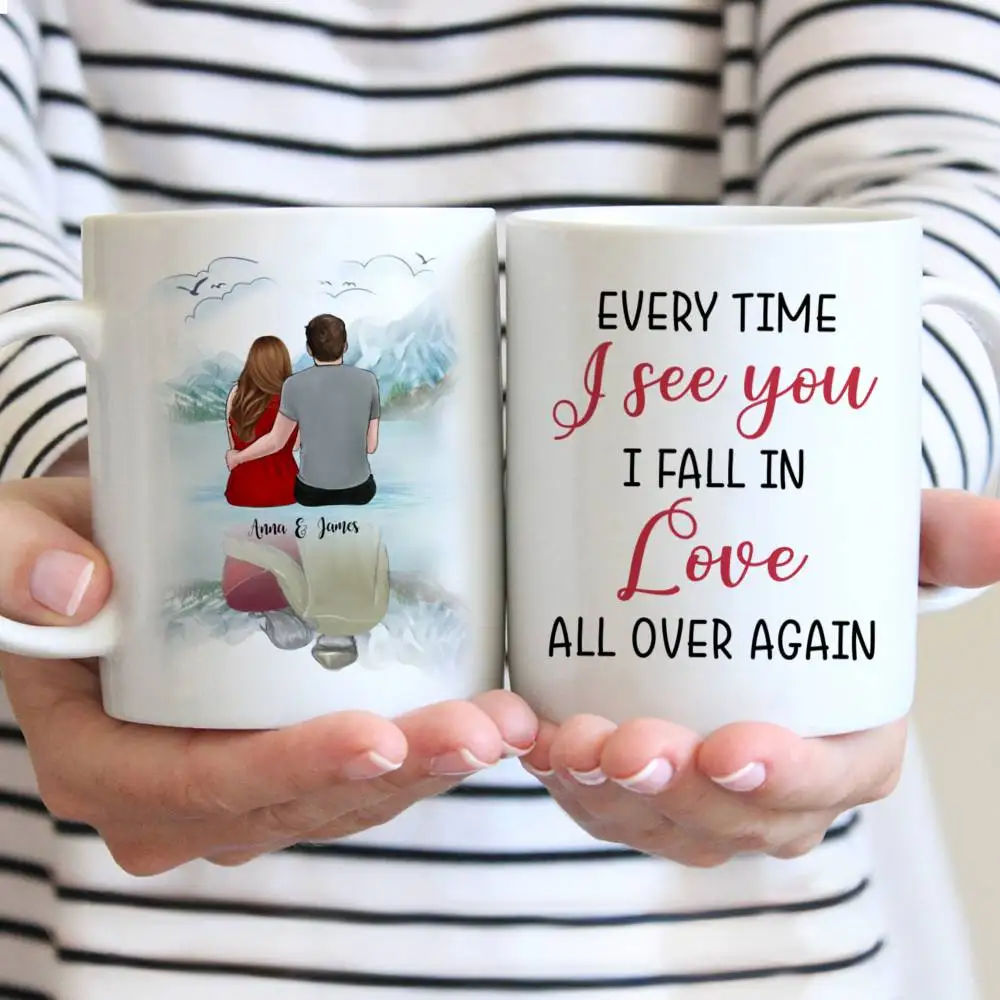 Пара персонализированных чашек, кофейные чашки на заказ, подарок для жены, мужа, сделай сам, влюбитесь снова 1115 унций R2063