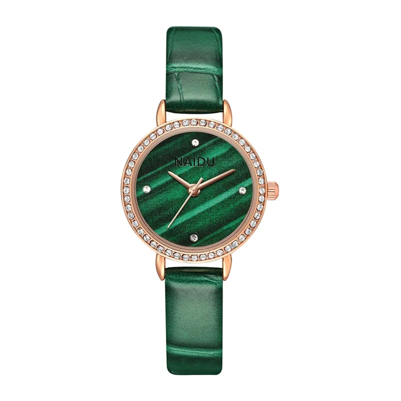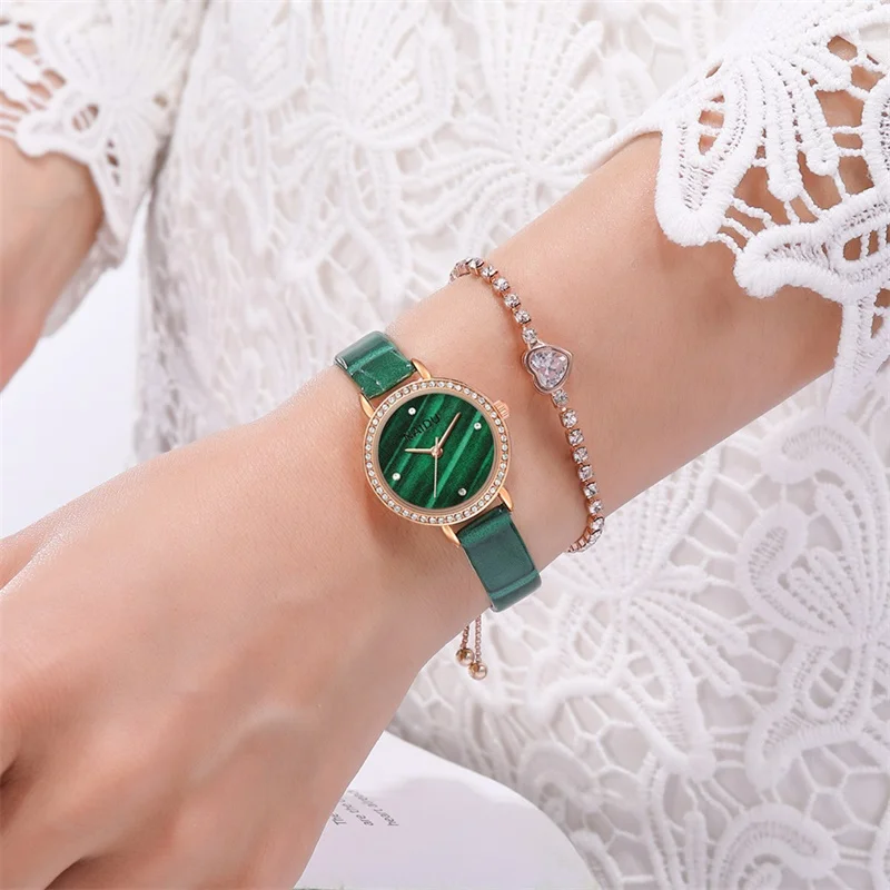 Роскошные бриллиантовые модные женские часы, элегантные женские кварцевые наручные часы из искусственной кожи, повседневные зеленые женские часы, водонепроницаемые подарки