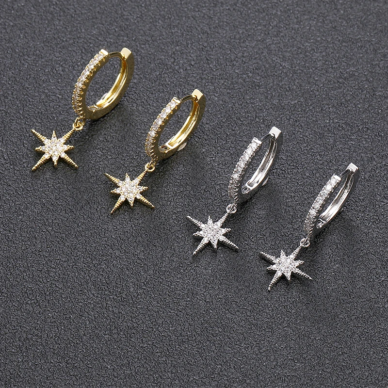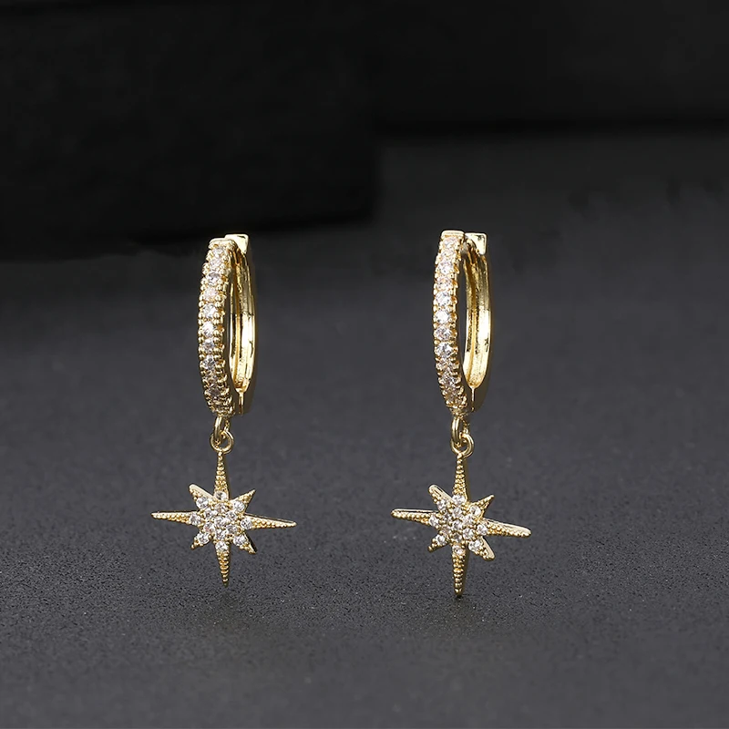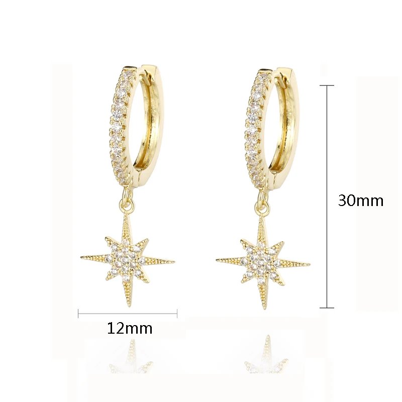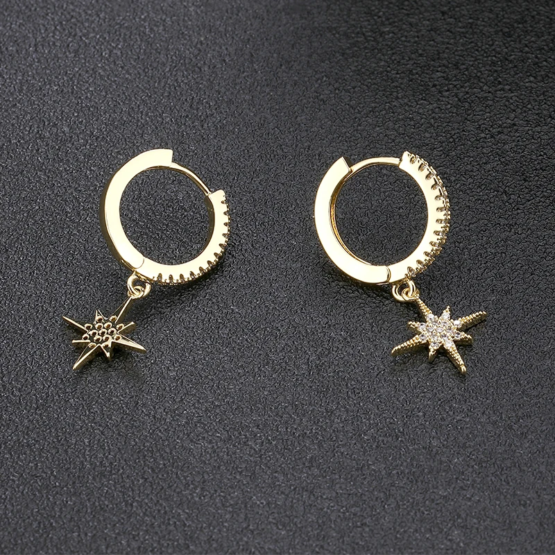 Новые модные простые серьги со звездочками из кубического циркония, корейские Роскошные позолоченные ретро серьги-кольца для женщин и мужчин, Wendding ювелирные изделия