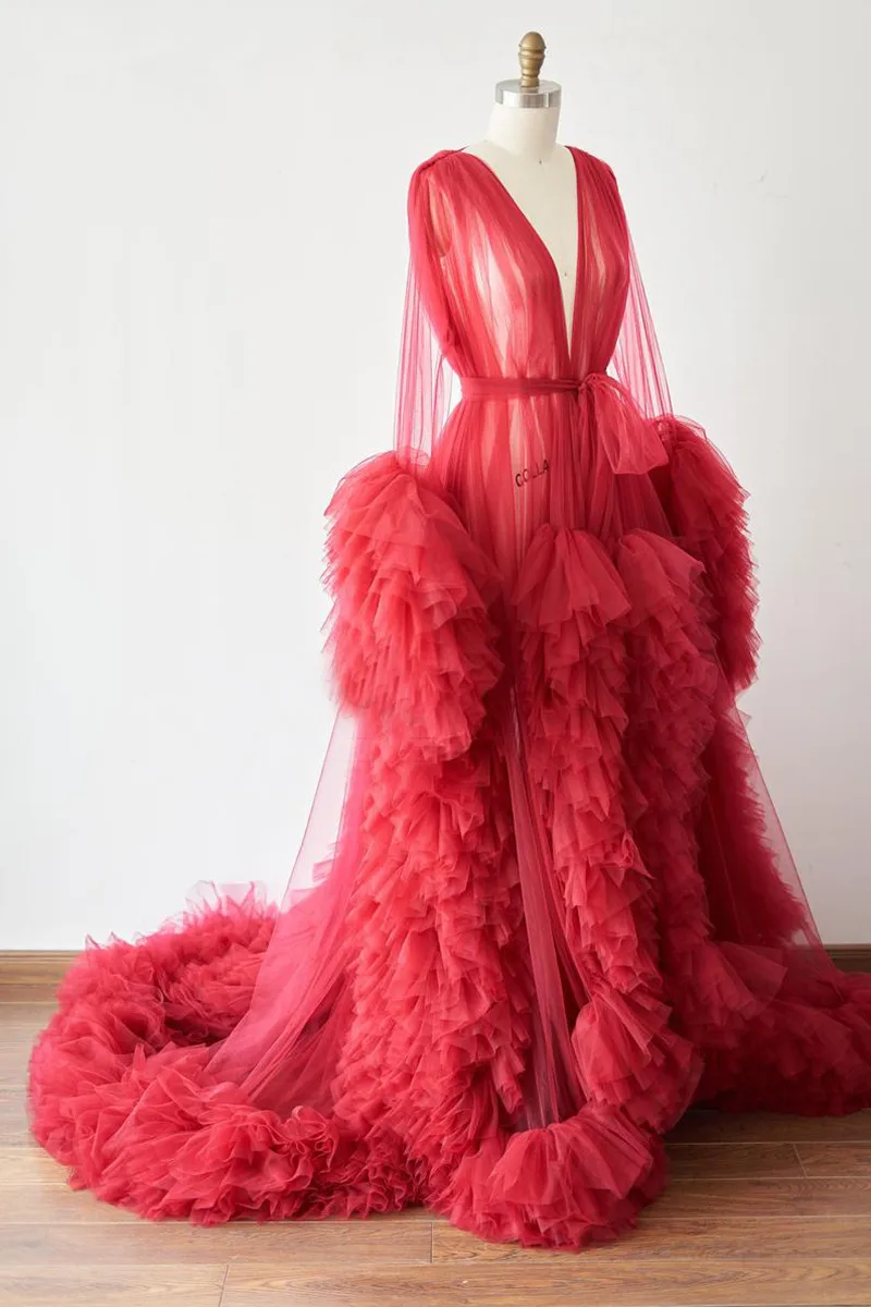 Женское удлиненное кимоно с оборками, Длинное Пышное Тюлевое платье...