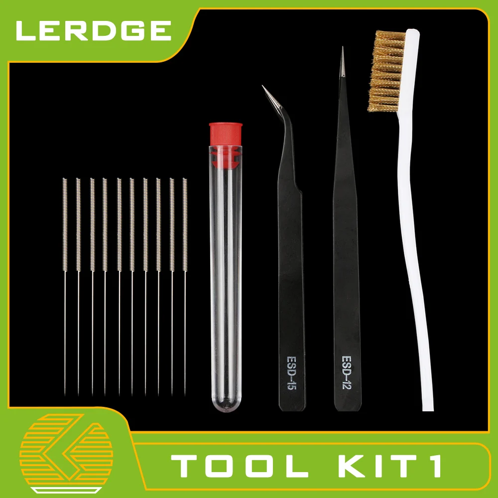 Инструмент для очистки сопла экструдера LERDGE 3D принтера, сгибаемое сверло, иглы из нержавеющей стали, пинцет, проволочная щетка, комплект 1, 10 шт.