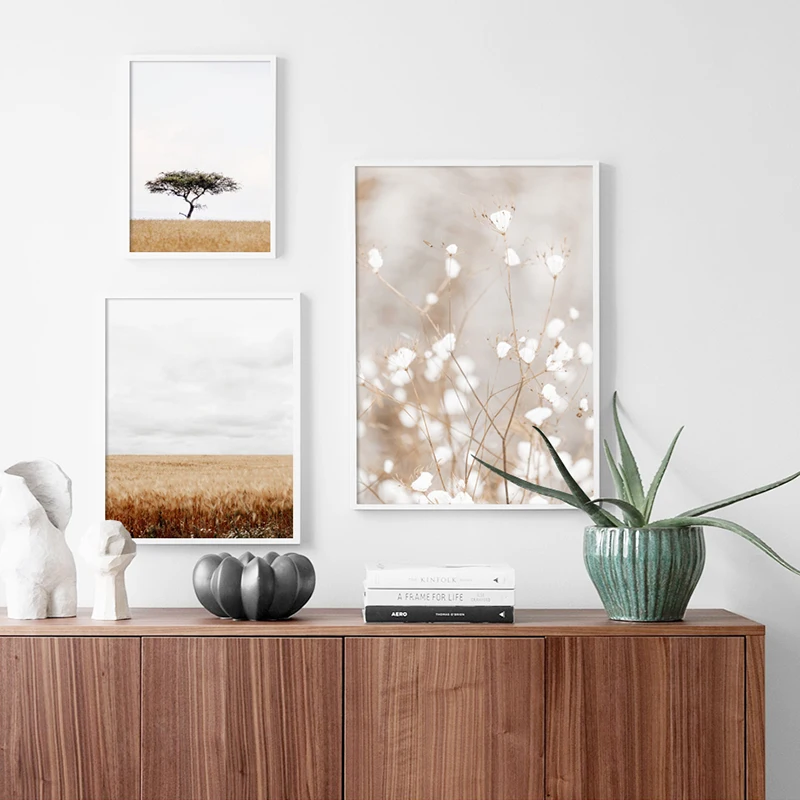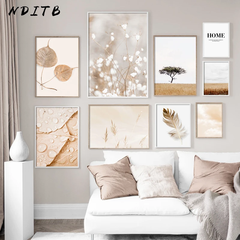 Скандинавский осенний пейзаж, постер с изображением природы, травы, листьев, стены, Художественная печать на холсте, минималистский бежевый рисунок, Современное украшение для дома и комнаты