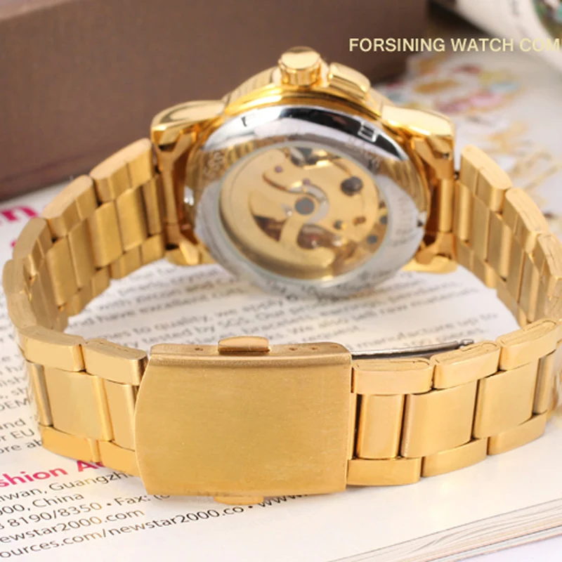 Женский Автоматический Скелет Fashon Winner, роскошный золотой ремешок из нержавеющей стали, брендовые часы, подарок для девушки