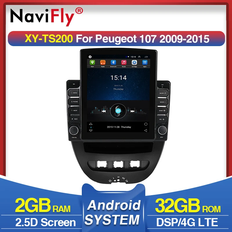 Мультимедийный автомобильный плеер, автомагнитола с экраном 9,7 "Tesla для Peugeot 107 2009 -2012 2015, радио, gps-навигатор, carplay