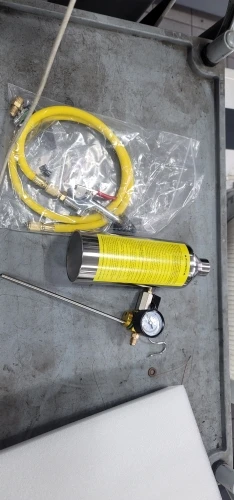 ● Заполните канистру промывочным материалом, нагнетайте воздухом магазина и промойте каждый компонент.