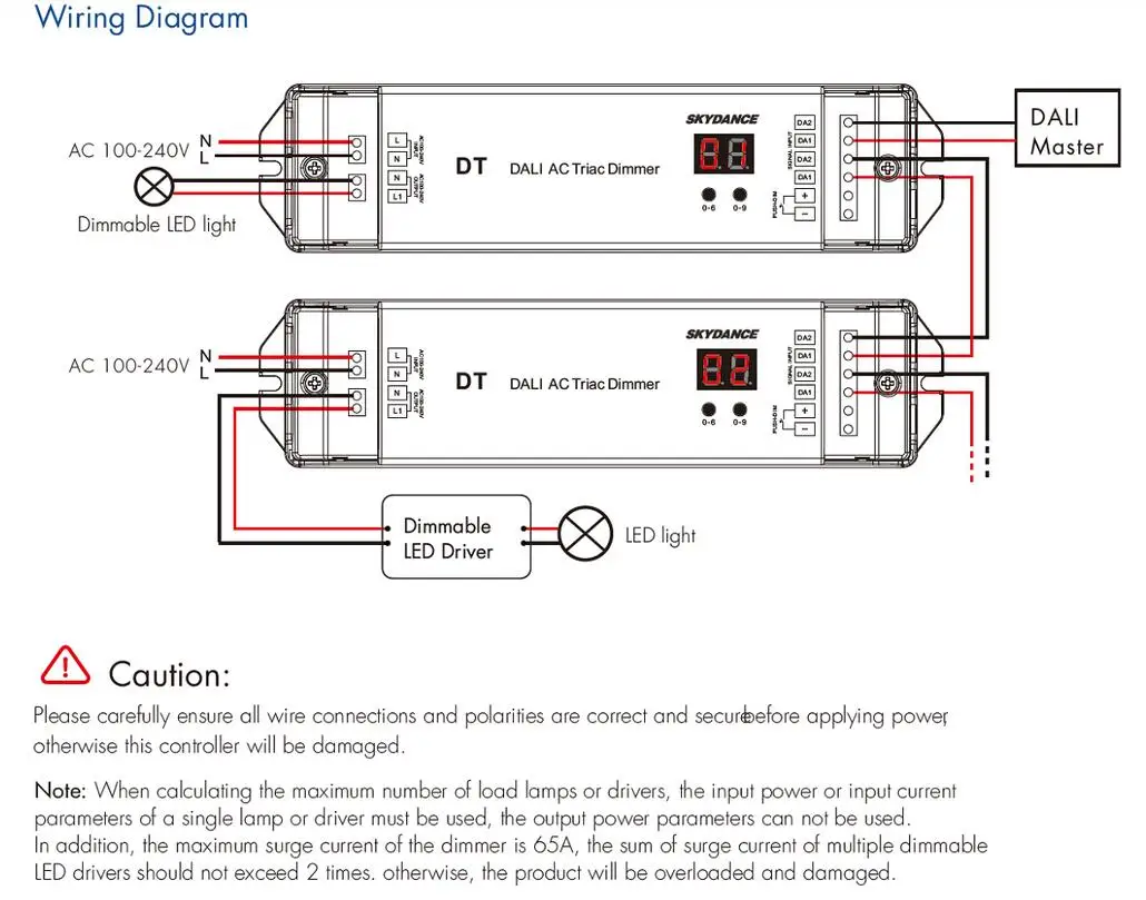 Диммер переменного тока с переменным током DT, 1 канал * 1,5 А, 1 адрес DALI, 1-канальный выход, передний край или задний край, цифровой дисплей SkyDance