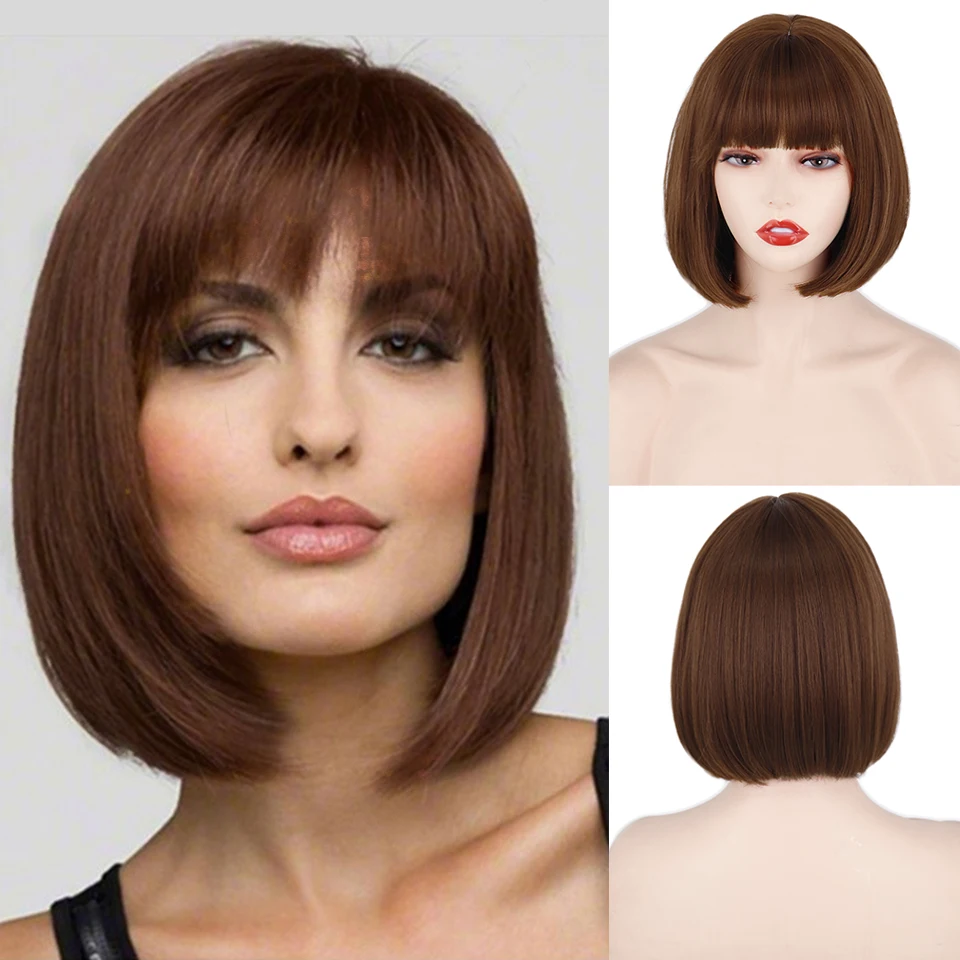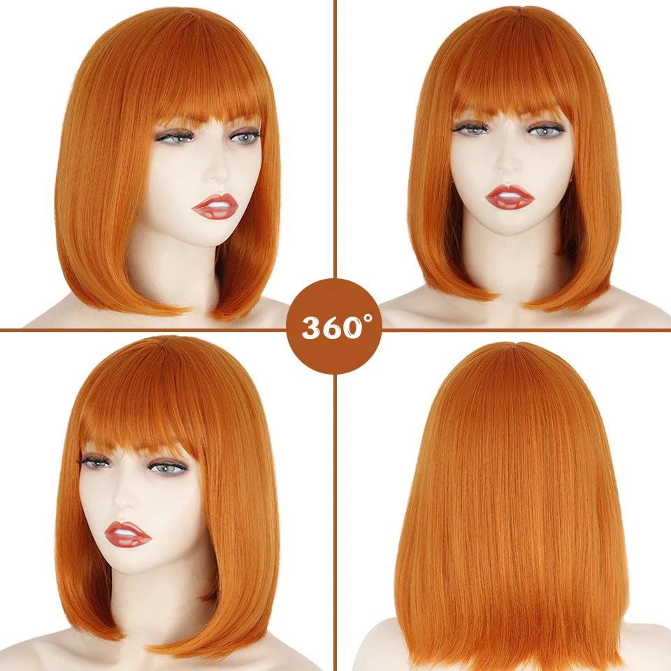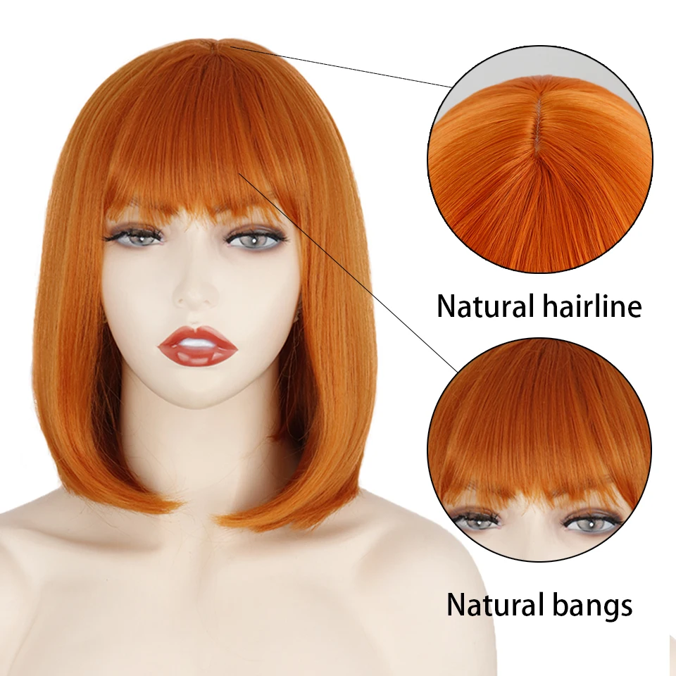 Короткий парик Боб с челкой для женщин, синтетические парики боб, оранжевый, черный, розовый парик для ежедневного использования вечерние длина до плеч