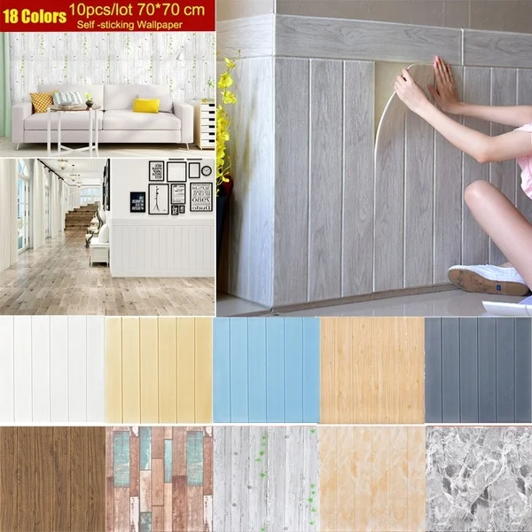 3D Самоклеящиеся обои с текстурой дерева, настенные стикеры 18 цветов, мягкая упаковка, для украшения стен детского сада, водонепроницаемая пена