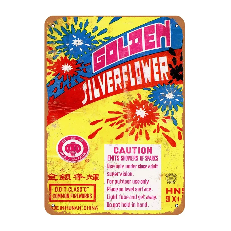 1988 китайский фейерверк Винтаж выглядят металлический знак золотой Silverflower кН на стену для дома и бара украшения жестяная вывеска 12x8 дюймов icon star icon star icon star icon star icon star