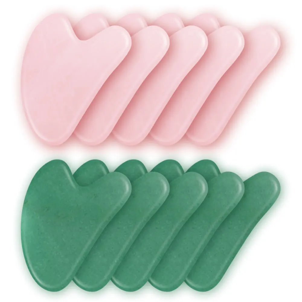 Скребок гуаша из розового кварца и нефрита в форме сердца, 10 шт.