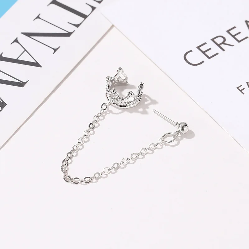 Серьги-гвоздики женские, золотистыесеребристые, в форме короны, Длинная кисточка, цепочка