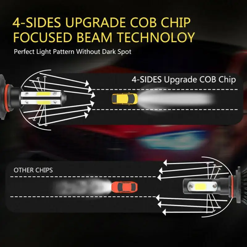 Ультра яркий: изготовленный на заказ COB источник освещения до 16000 лм/пара, 6000 К холодный белый, на 300% + ярче, чем галогенный, что значительно повышает светоотдачу. Более ровный и более широкий угол луча для более безопасного ночного вождения.