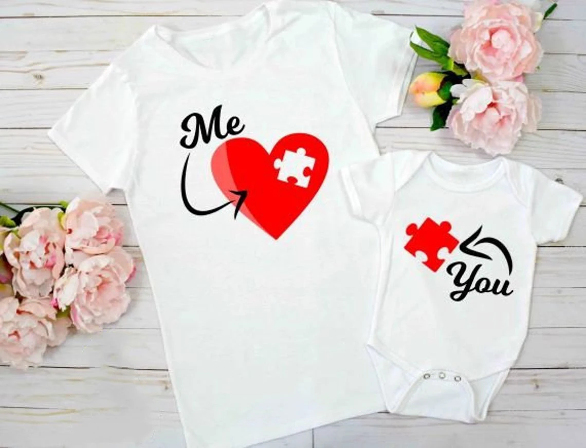 Любовь одежда для мамы и меня "кардиограмма сердца", Футболка для м...