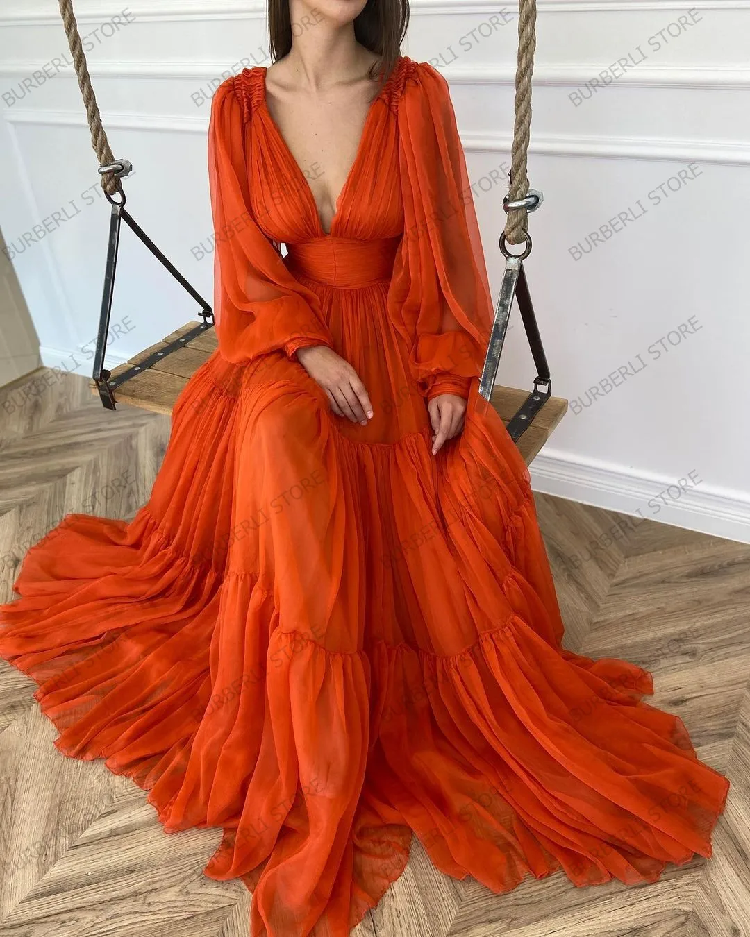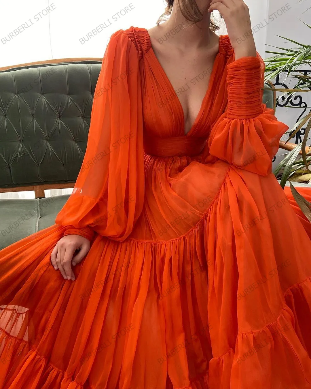 Женское ТРАПЕЦИЕВИДНОЕ ПЛАТЬЕ из фатина, с V-образным вырезом и рукавами-фонариками