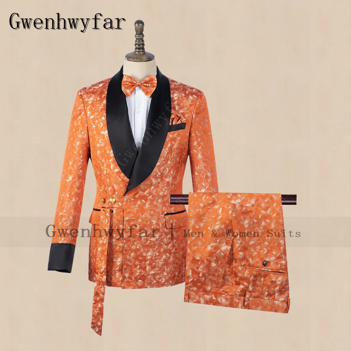 Мужской костюм Gwenhwyfar с поясом, Осенний Модный комплект из 2 предметов в британском стиле с принтом, блейзер и брюки, свадебное платье, смокинг для выпускного вечера