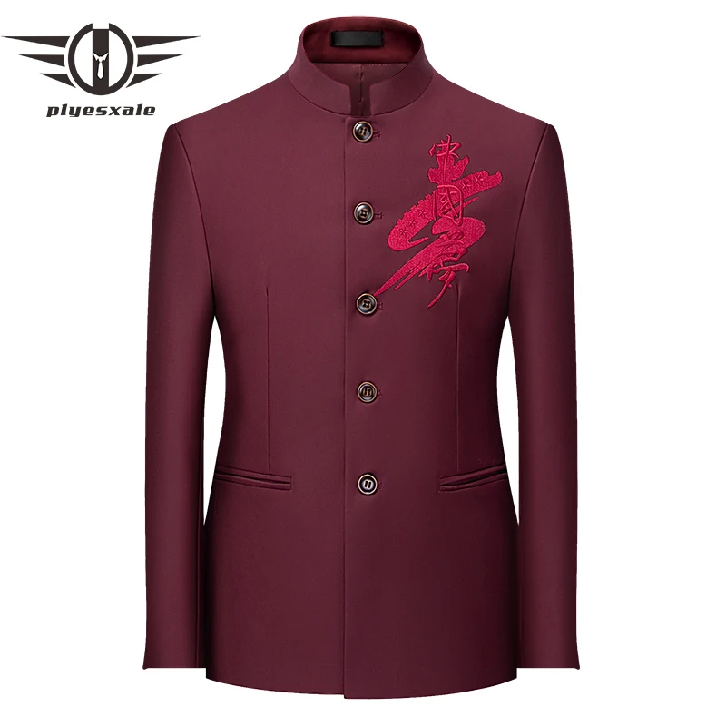 Китайский стенд блейзеры с воротом для мужчин 2021 Модная Джинсовая куртка с вышивкой Zhongshan Блейзер пиджак желтое или бордовое черный, белый цвет военно-морской флот Q66
