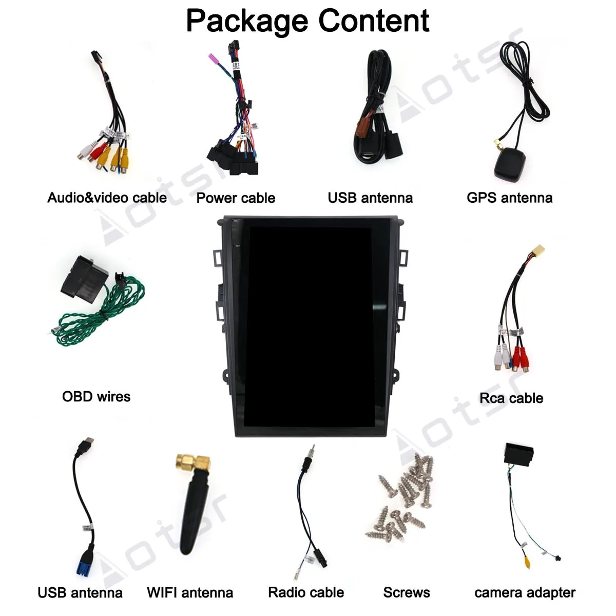 Подходит для Ford Fusion Mondeo MK5 2013 - 2019 > Конфигурация продукта: 12,1 дюймов IPS сенсорный Экран: 1. Система Android 9, 4 Гб RAM + 128 ГБ ROM, встроенная система CarPlay и DSP; > Что такое DSP? DSP является функцией, может повысить качество звука, качество звука автомобильного плеера с DSP выше, чем у него без DSP. > Внимание: 1. Продукт совместим с кондиционером. После установки вы можете управлять кондиционером на экране; 2. Продукт поддерживает все оригинальные функции автомобиля. > Особенности: 1. Встроенный GPS 2. Поддержка голосового управления 3. Поддержка 70 языков 4. Поддержка Wi-Fi, 3G / 4G интернет 5. Поддержка HD фильмов и радио тюнер 6. Поддержка оригинального управления рулем 7. Работа с фронтальной камерой и обратной камерой 8. Поддержка OBD: Диагностика состояния вашего автомобиля в любое время 9. Поддержка зеркальной связи: Любое содержимое смартфона Android или IOS может отображаться на экране устройства 10. Поддержка TPMS (необходимо купить TPMS отдельно): Может отображать температуру и давление в шинах с высокой точностью, чтобы контролировать 4 шины на экране для безопасного вождения. > Часто задаваемые вопросы: 1. Мне нужно купить какой-либо провод адаптера или какие-либо аксессуары для него? Нет, головное устройство получает оригинальный жгут и кабели plug- and -play, нет необходимости покупать любые аксессуары или детали, чтобы сделать все функции для работы. 2. Мне нужна рамка для установки? Нет, этот товар прост в установке, он идеально подойдет вашему автомобилю, нет необходимости резать приборную панель и нет необходимости в рамке. 3. Есть ли в магазине какие-либо другие аксессуары, которые прекрасно работают вместе с этим товаром? Да, ниже приводится сканирование некоторых аксессуаров, в моем магазине есть более функциональные аксессуары, пожалуйста, нажмите на картинку ниже в магазине, чтобы просмотреть.