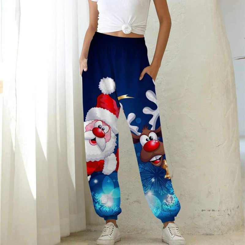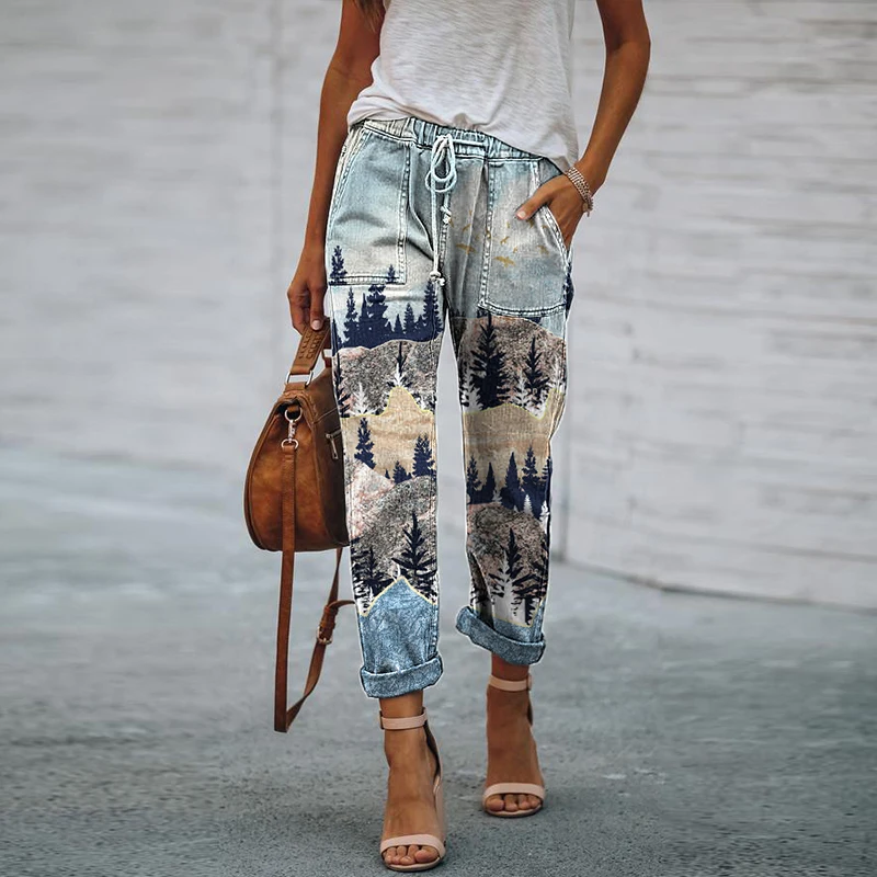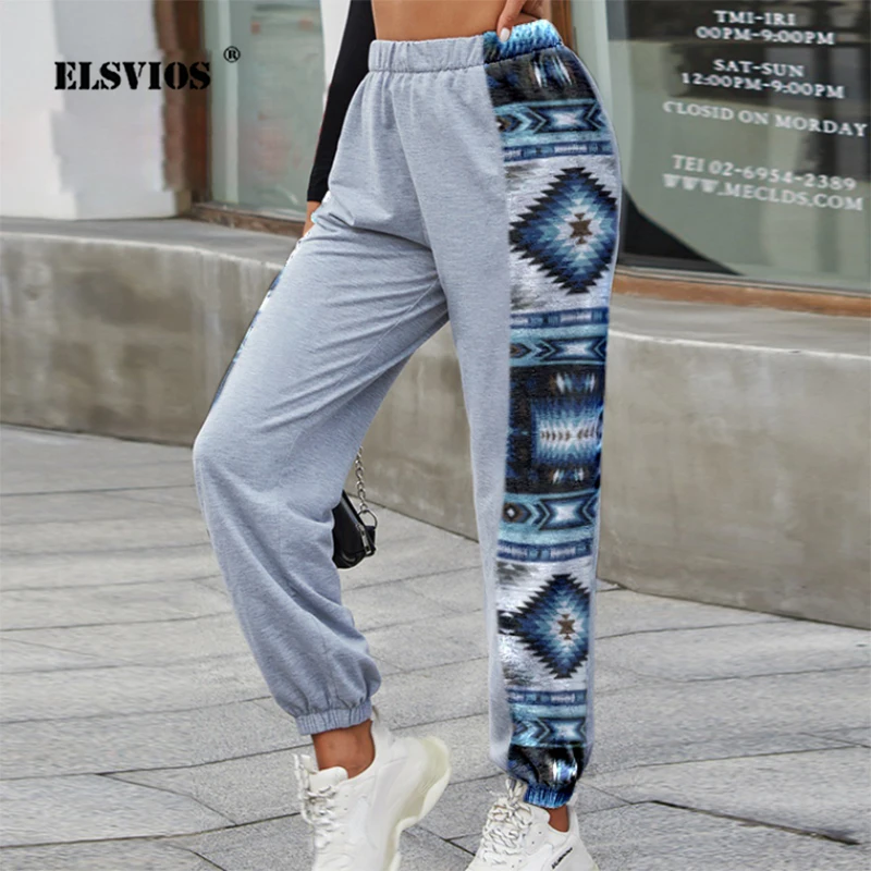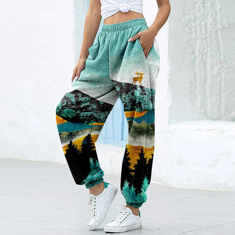 Брюки женские весенне-осенние, с эластичной талией и принтом