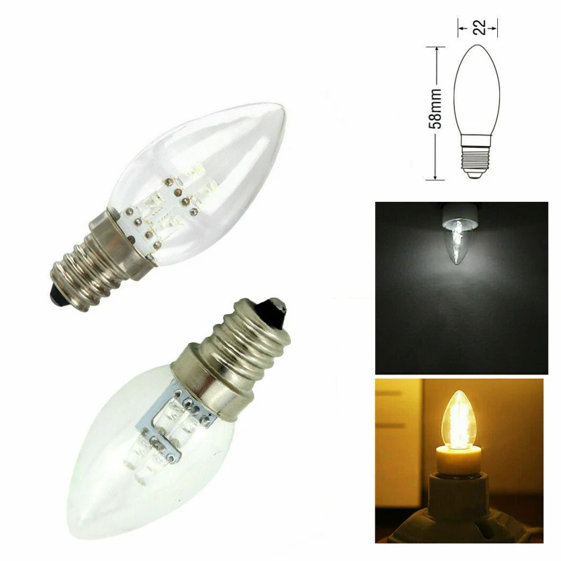 Источник светильник светодиодный ные чипы высокой мощностиМатериал абажура: стеклоМощность лампы: 1 Вт (≈ 10 Вт лампа накаливания)Тип основания: E12Количество СВЕТОДИОДНЫЙ Дов: 4 шт.Цвет светильник: теплый белый/холодный белыйВходное напряжение: 220 В переменного тока/110 ВЛюмен: 80 лмУгол свечения: 360 °Рабочая температура: -20 ℃ ~ + 40 ℃Срок службы: 30000 часовРазмер (Ш * В): 22*28 ммВес: 9 г
