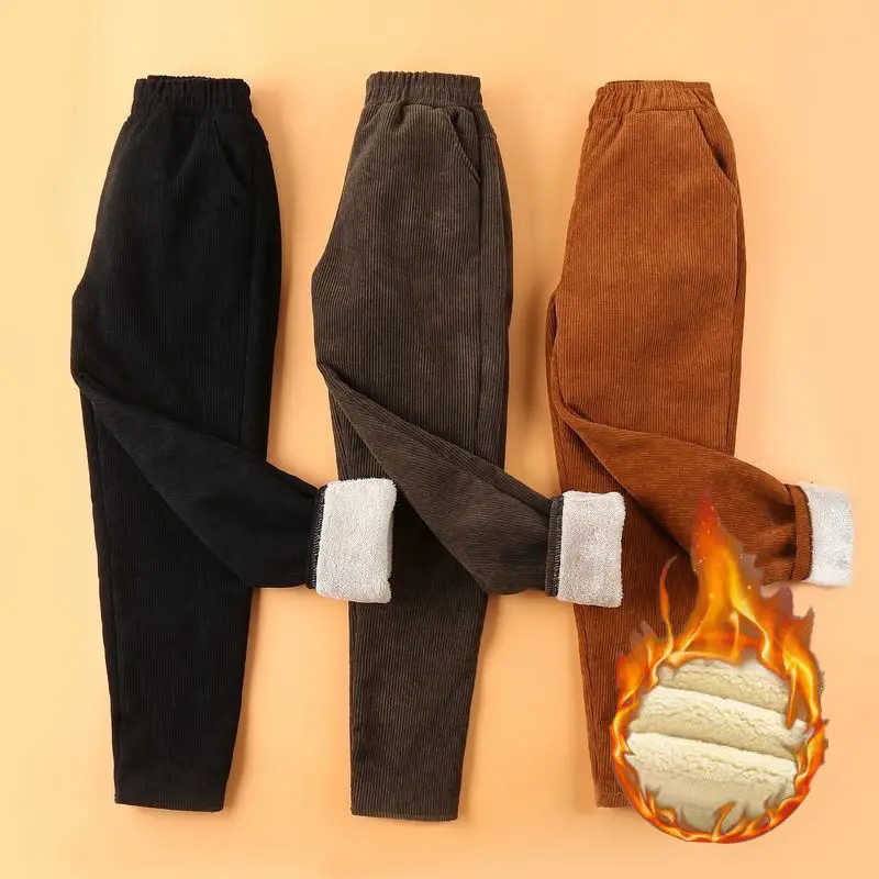 Брюки для женщин плюшевые плотные повседневные брюки женские вельве...