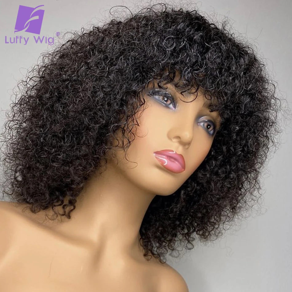 200 плотные Короткие вьющиеся человеческие волосы, парики с челкой,...