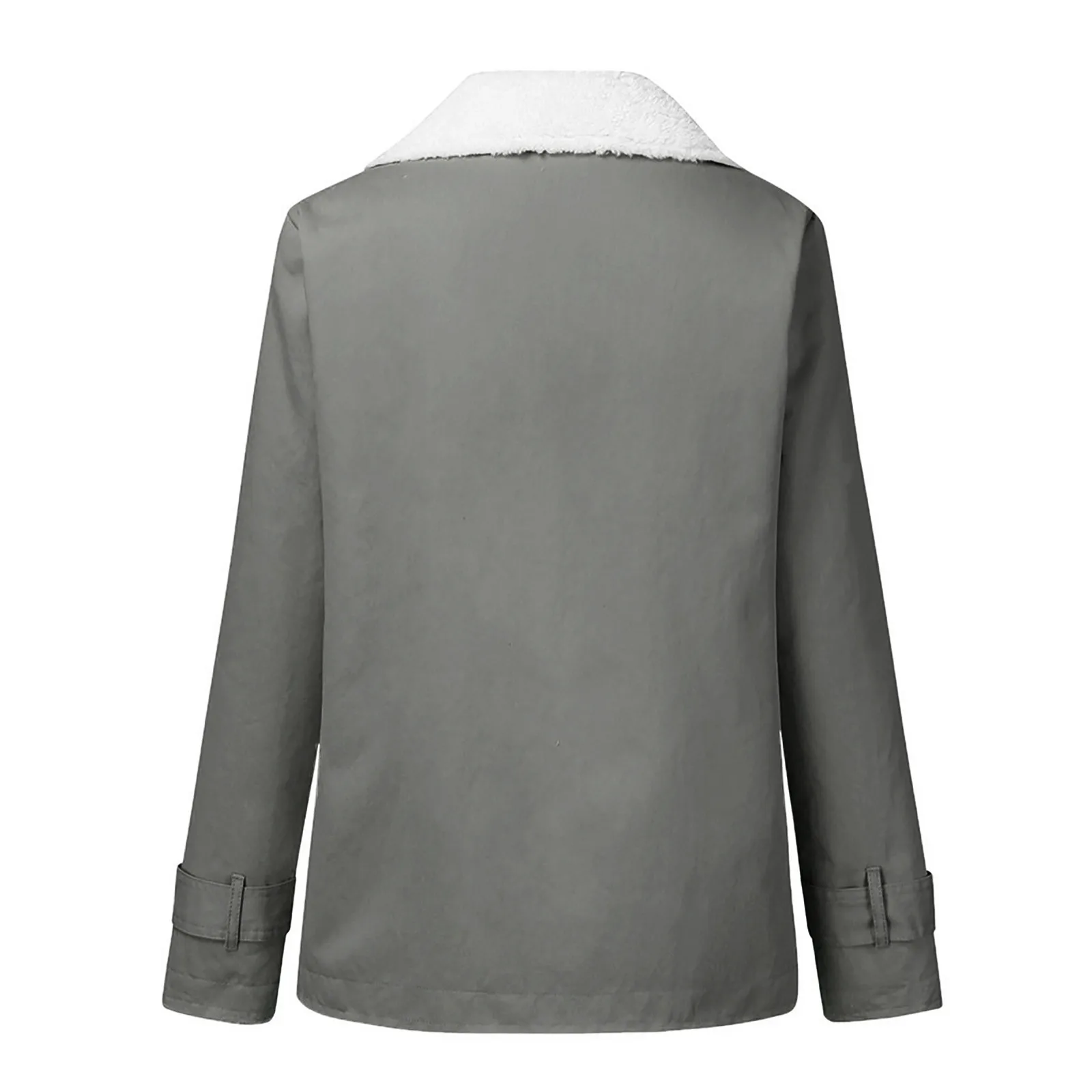 Парка женская с плюшевыми лацканами, однотонная теплая куртка с карманами, на пуговицах, повседневная верхняя одежда, большие размеры, C16