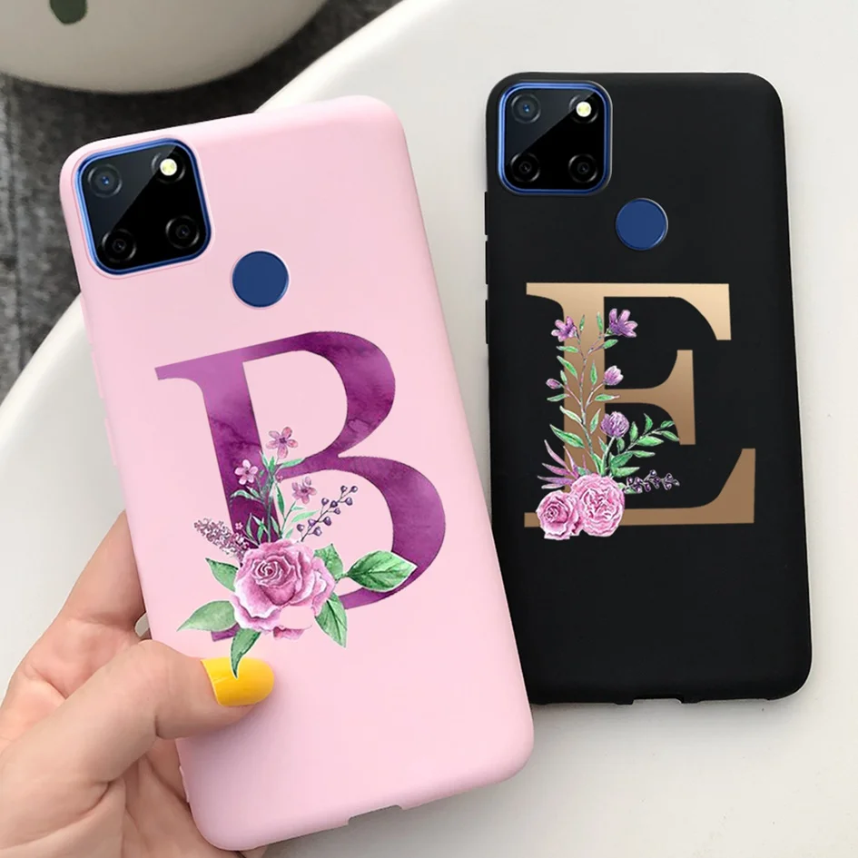 Чехол для OPPO Realme C15, роскошный черный матовый Силиконовый мягкий чехол с буквами для Realme 7 6 Pro 6i 5i 5s 5 C12 C11 C3 чехол для телефона, чехол