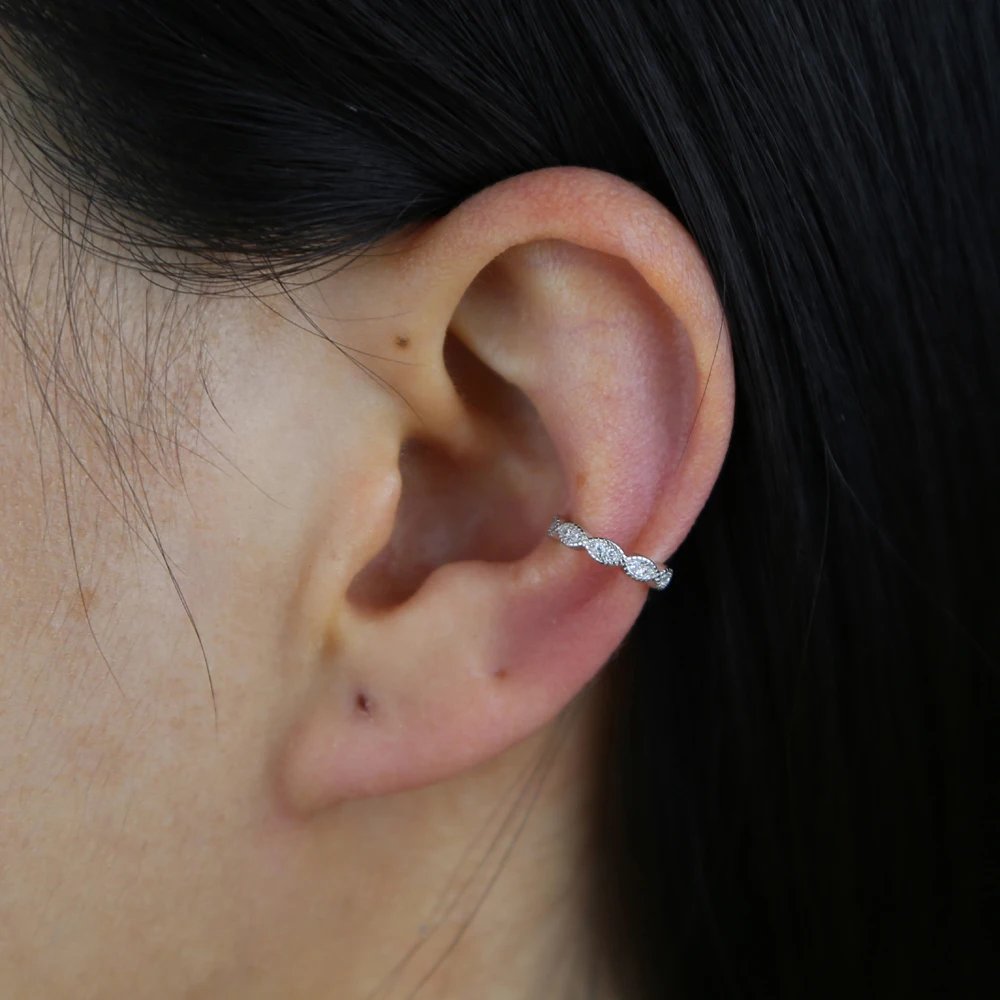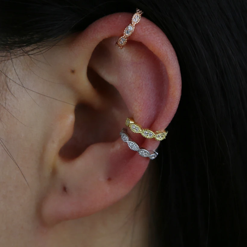 Каффы для ушей без пирсинга, серебро 925 пробы, 3 цвета