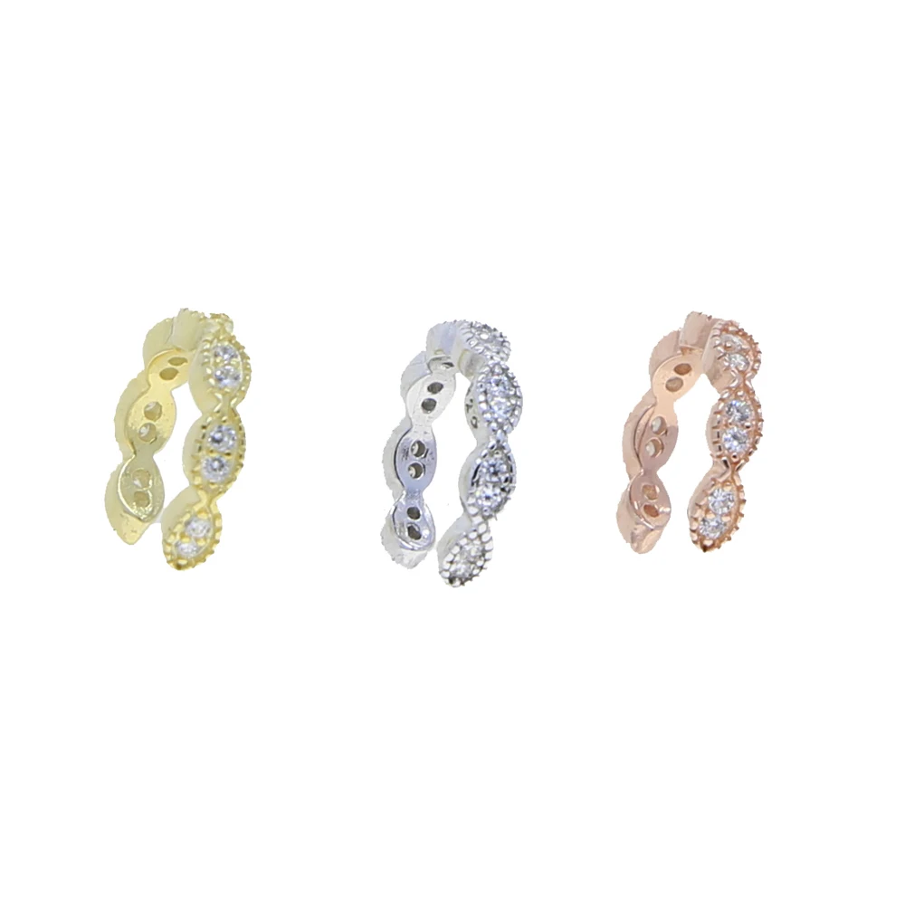 Микро паве CZ Бесконечность группа без пирсинга уха манжеты 925 пробы серебро 3 цвета стек простые клипсы на серьги