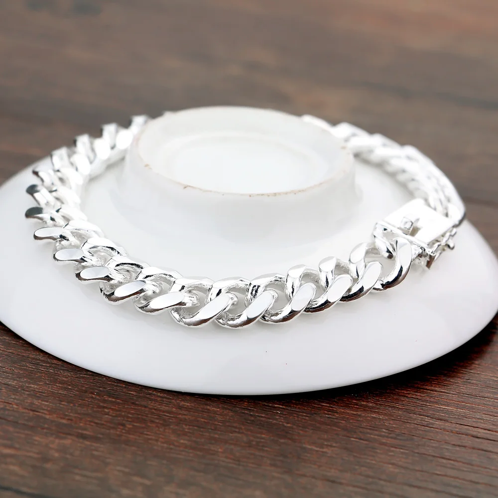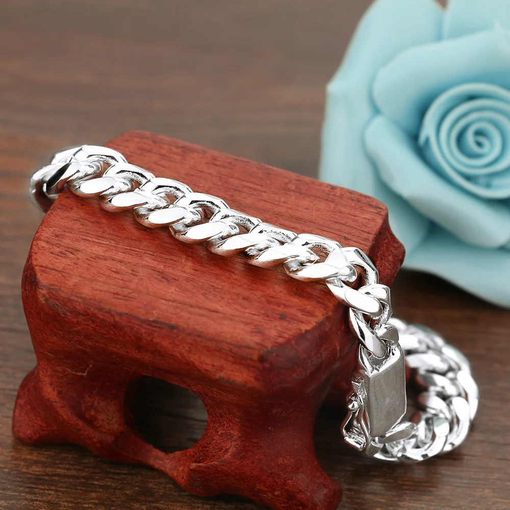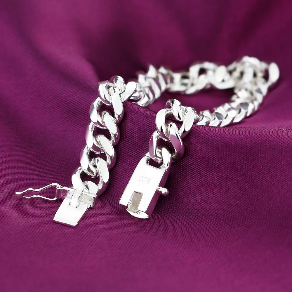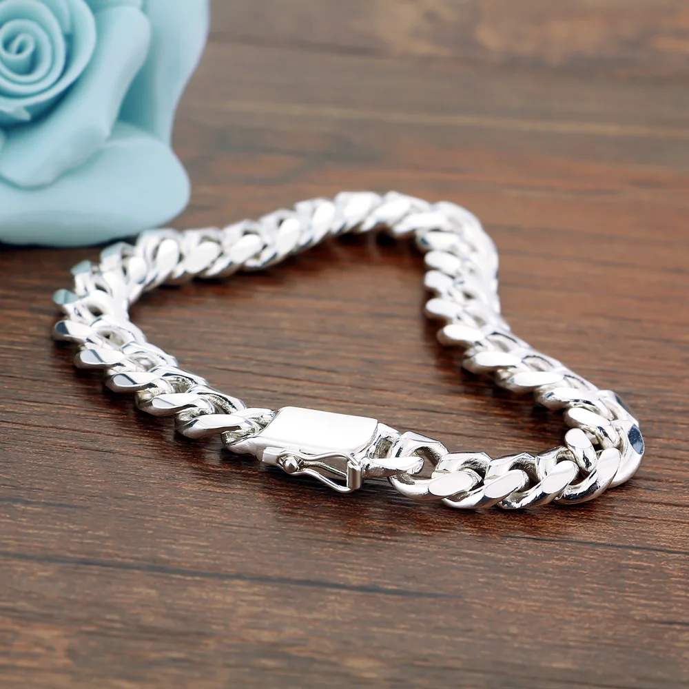 Классический мужской оригинальный браслет из серебра 925 пробы в стиле хип-хоп, 10 мм, кубинская цепочка, очаровательный браслет, ювелирные изделия, аксессуары для рэппера, длина-8 дюймов