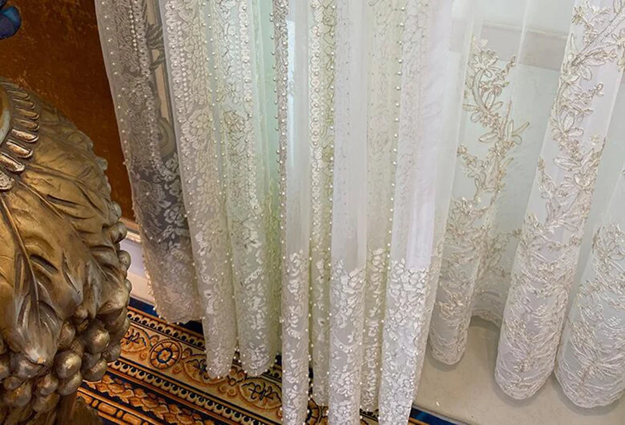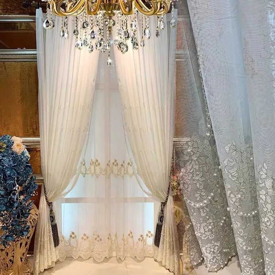 Тонкие тюлевые шторы с вышивкой, с белыми жемчужинами, Роскошные, для гостиной, романтические, золотые провода, Свадебный декор, M201-5