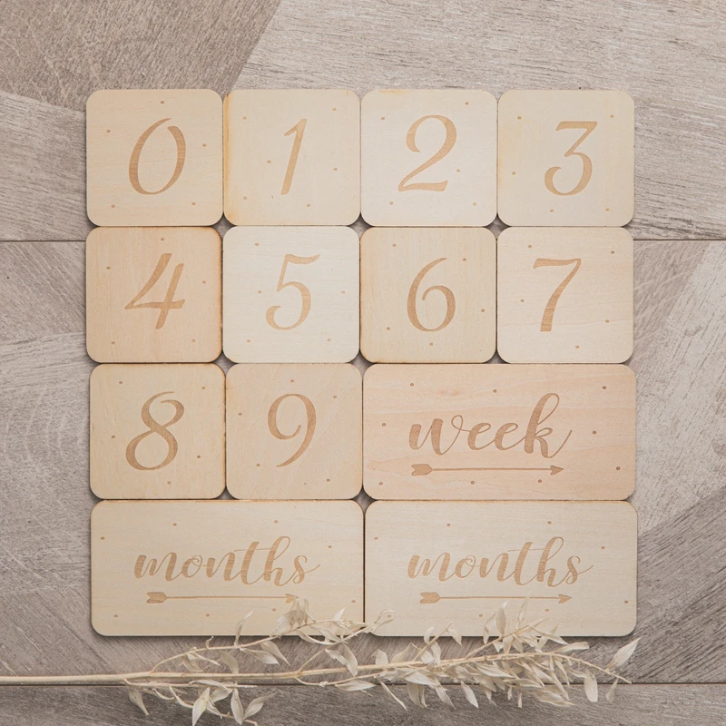 Детские деревянные карточки с квадратными цифрами для новорожденных, 7 шт., реквизит для фотографий, игрушки сделай сам, подарки для новорожденных с гравировкой