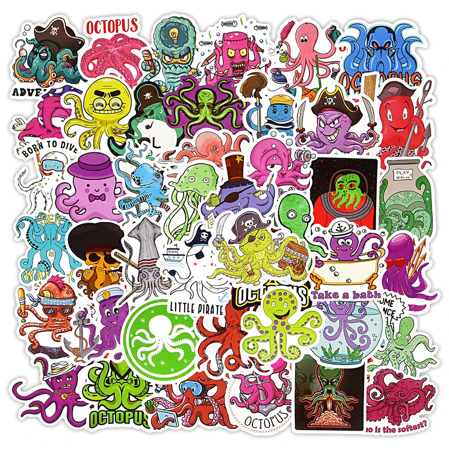 50 шт Осьминог мультфильм наклейки крутые милые забавные животные аниме водонепроницаемые наклейки для детей DIY скрапбук велосипед игрушки украшения