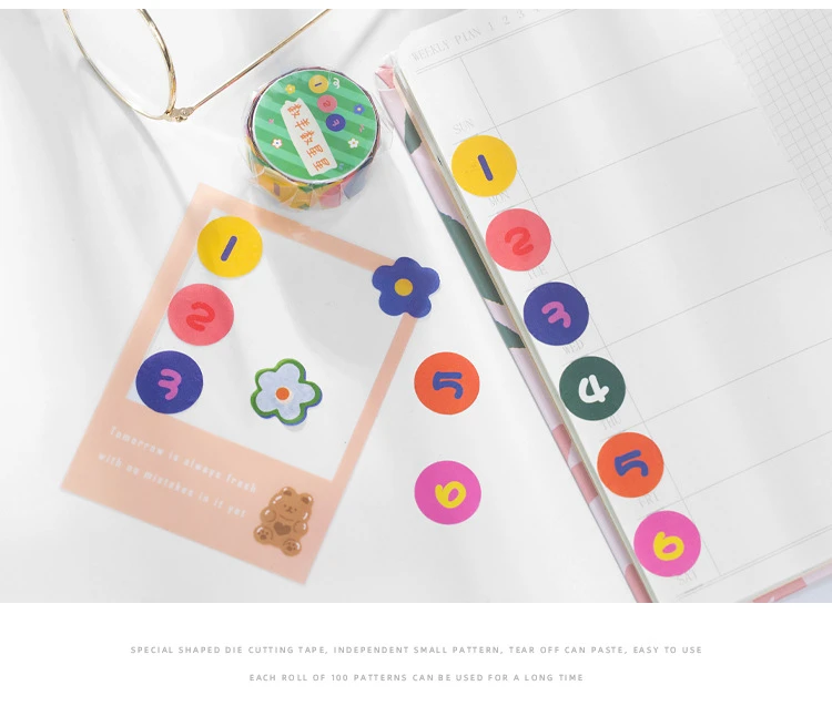 Yisuremia 100 шт., кавайная клейкая лента для украшения дневника, скрапбукинга, герметичная наклейка, этикетка, школьные канцелярские принадлежности