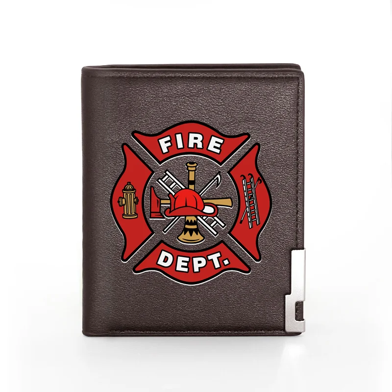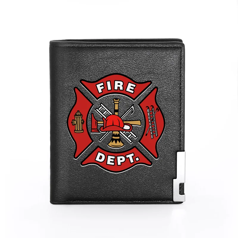 Модный кожаный короткий кошелек для мужчин и женщин, бумажник черного цвета с отделением для удостоверения личности, кредитных карт, для пожарной службы