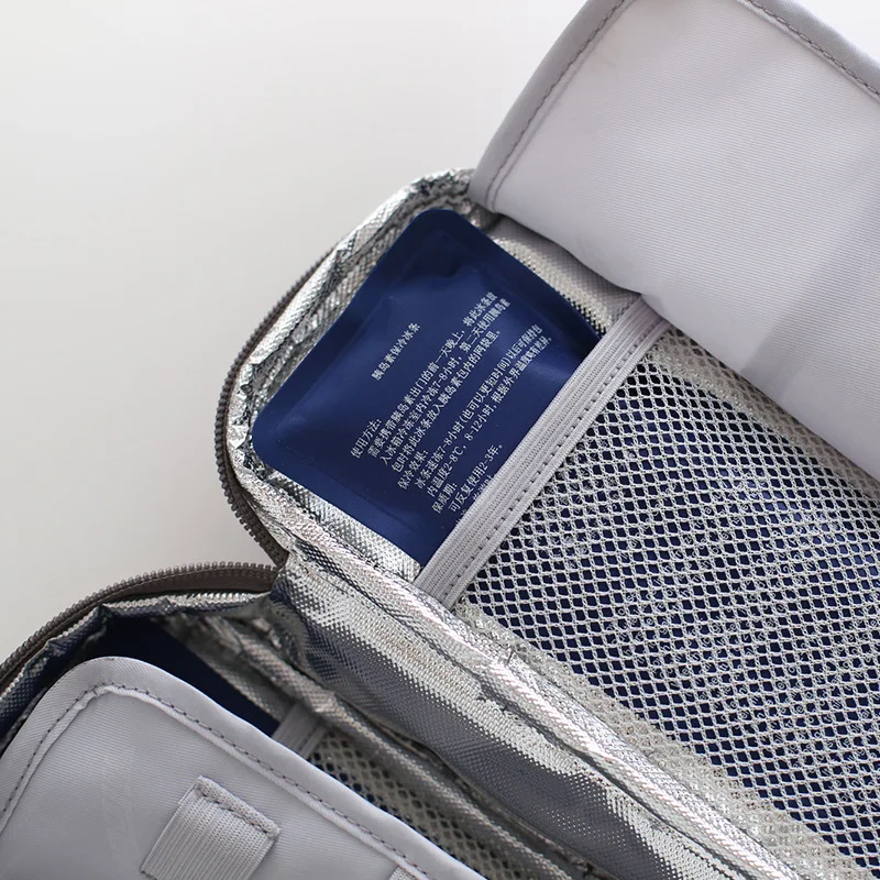 Технические характеристики: 100% новый бренд и высокого качества Материал: алюминиевая фольга + ткань Оксфорд Размеры/педикюра задняя часть: около 21*4,5*10 см, в комплекте 1 шт. мешок льда + 2 сосулька Цвета: синий, оранжевый, серый Особенности: 1. Легко открывается и закрывается на молнию. 2. Алюминиевая фольга Изолированная подкладка, лучше держать температуру для вашего инсулина. 3. Портативный дизайн, вы можете носить его в любом месте.