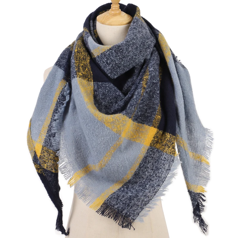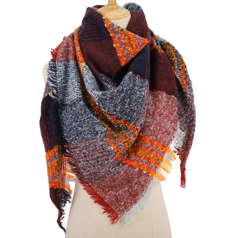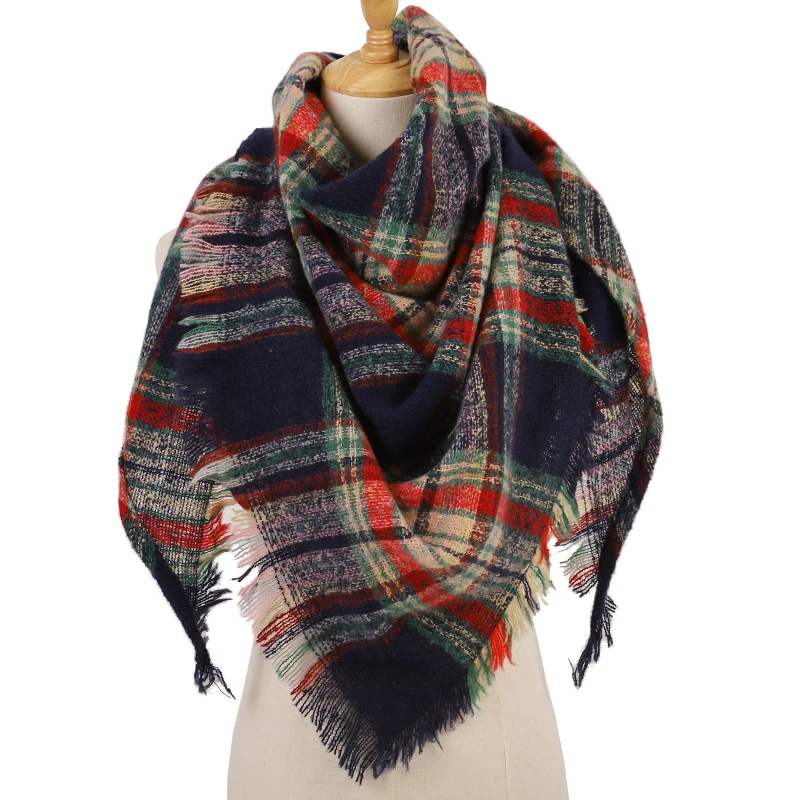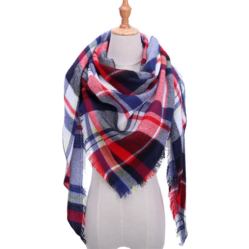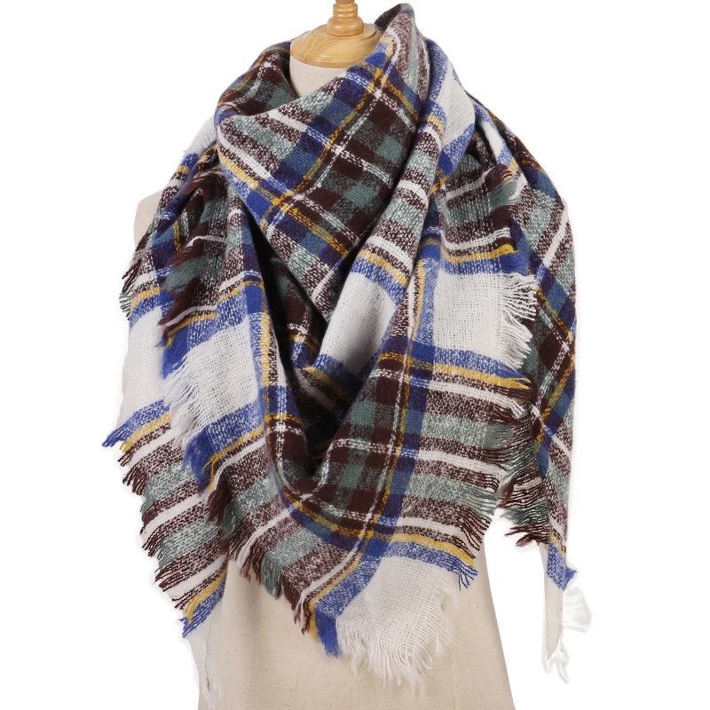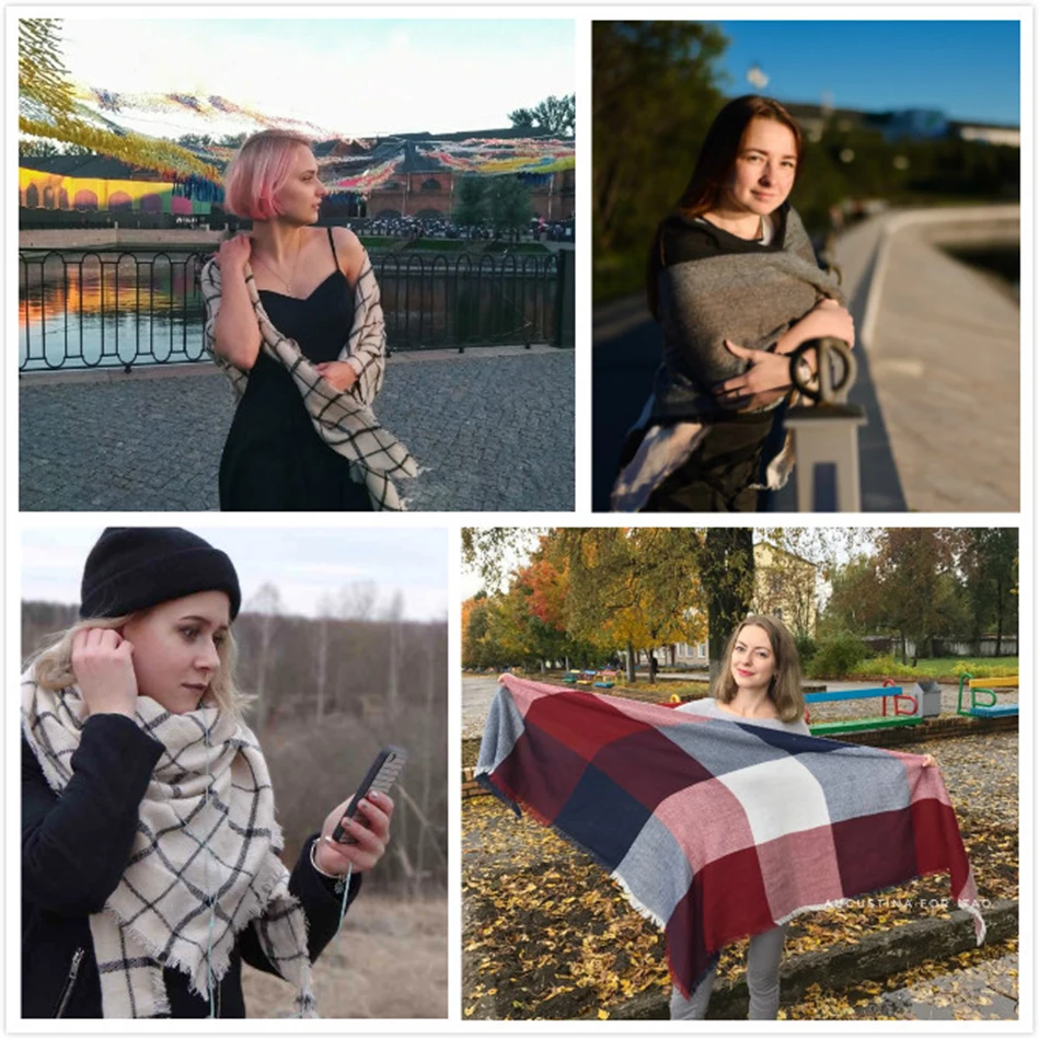 Дизайнерский вязаный весенне-зимний женский шарф, клетчатые теплые кашемировые шарфы, шали, роскошная брендовая Шейная бандана, Женская Пашмина