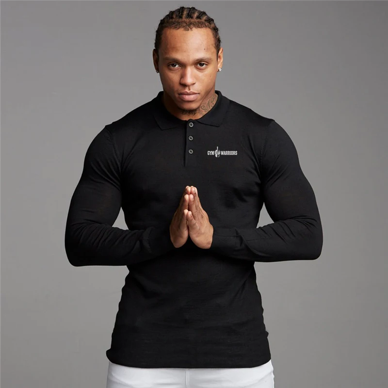Высокое качество Мужская рубашка-поло с длинными рукавами на осень с отложным воротником поло топы тонкая Облегающая рубашка модная женская Повседневная дышащая Футболка с принтом