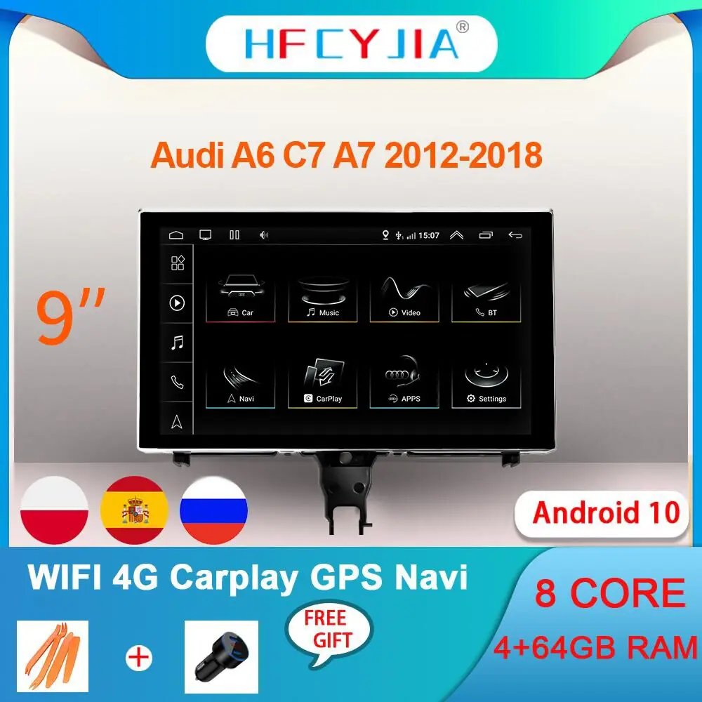 Автомобильная Мультимедийная система, 8 ядер, стерео, для Audi A6 C7 A7 2012-2018, 4 + 64 Гб ОЗУ, Wi-Fi, 4G Carplay, IPS, сенсорный экран, GPS, навигация, система Android 10