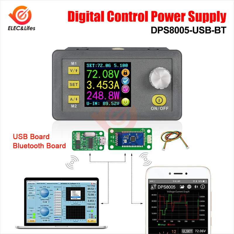 DPS8005 DP программируемый понижающий модуль питания постоянного напряжения тока Вольтметр Амперметр понижающий преобразователь 80 в 5 А USB BT